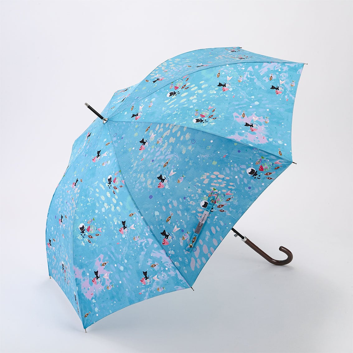 KASANOWA 「おおで ゆかこ デザイン " くろねこミニの海中散歩 " 」 /傘(晴雨兼用)