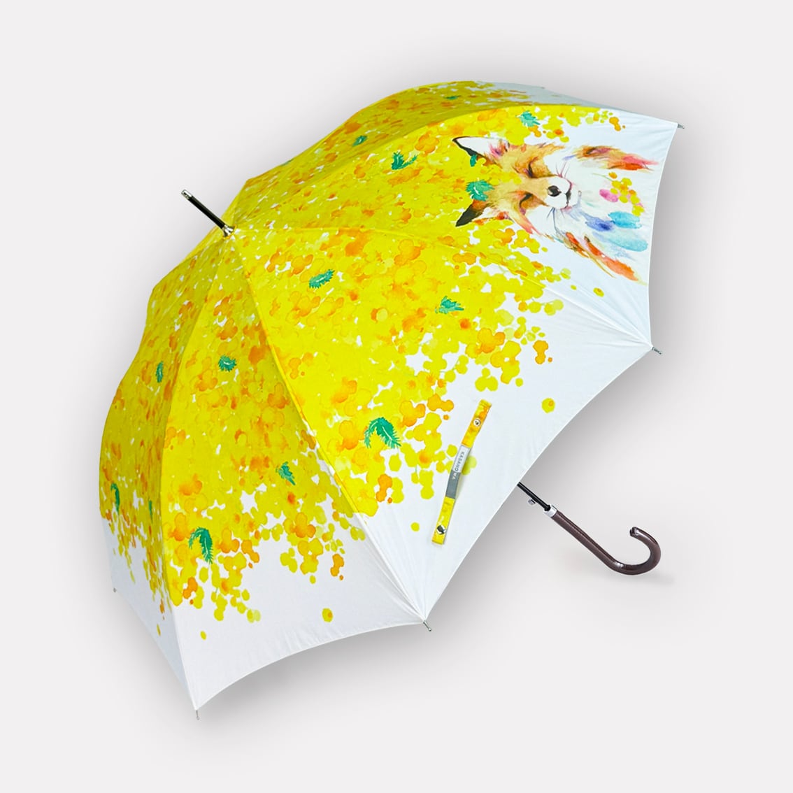 ミモザの花が降り注ぐような傘ができました。