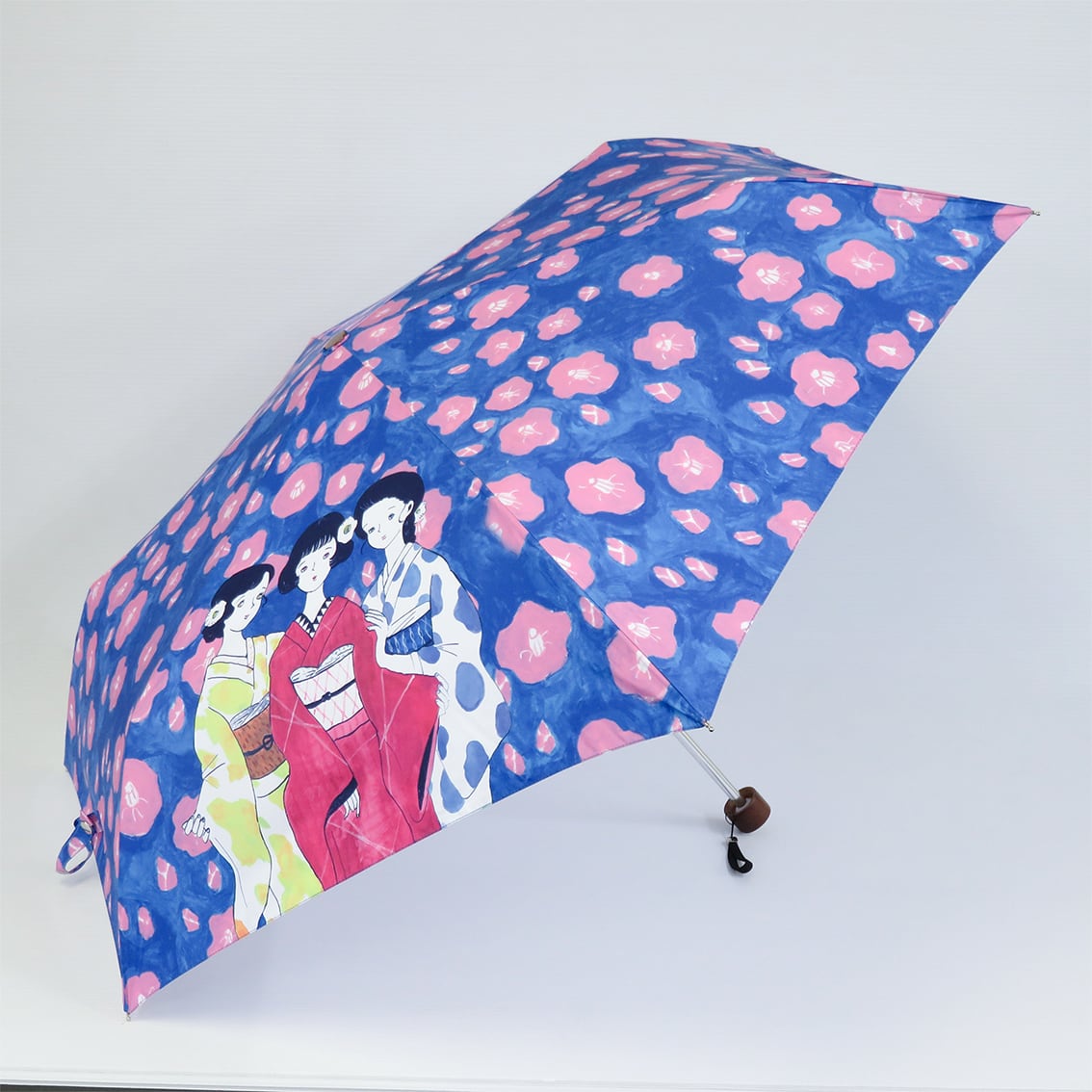 KASANOWA 「伊吹 春香 デザイン " 着物ガールと椿 " 」折りたたみ傘